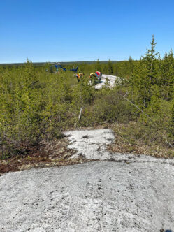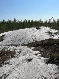 Au cours de l’été 2023, BRW a découvert un important affleurement de pegmatite à lithium, mesurant au moins 100 m de long par 15 m de large, connu sous le nom d’indice Anais. L’affleurement fait partie d’un ensemble de dykes de pegmatite qui sont tous riches en spodumène(voir le communiqué de presse du 13 juillet 2023).
